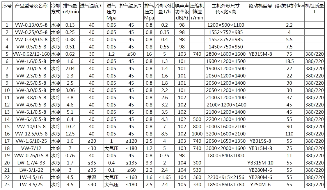 我公司是生产压缩机的专业公司,主要生产各类有油、无油、全无油润滑系列空气压缩机及氢气、氧气、焦化气、天然气、沼气、氮气、二氧化碳、氯气、氯甲烷、惰性气体等特种气体压缩机。 公司生产的压缩机主要有ZW.LW.VW型固定式和移动式四大类系列五十多个品种。